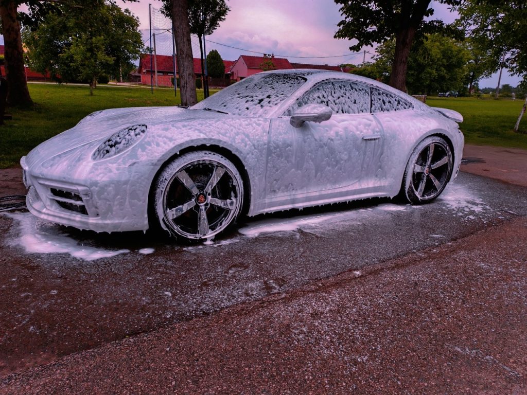 - DVOSTUPANJSKO POLIRANJE: Za ovaj stupanj se koristi jako abrazivna pasta koja uklanja ogrebotine laka u veličini P1000 uz minimalne tragove i blago zamućenje površine laka. Koristi se jako abrazivni vuneni pad kako bi se dobio visoki cut. Poliranje se završava drugim stupnjem gdje se koristi finish pasta uz optimalnu spužvu za uklanjanje holograma i vraćanje sjaja. Korekcija laka 90 %.